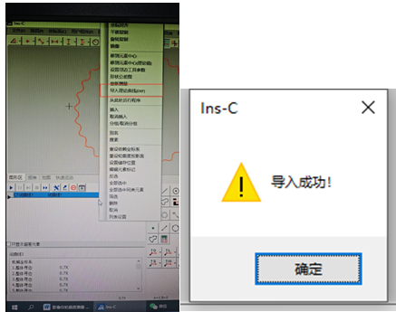 3. 导入数模文件:全自动CNC影像测量仪对于导入的数模文件格式要求是DXF格式,文件中不要有标注,只需要轮廓线。在元素区选择右键上述步骤生成的闭曲线,选择导入理论曲线,选择数模文件导入,点击确定,导入成功之后会有弹窗提示。