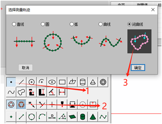 3.组合轮廓:与无基准测量轮廓的组合轮廓步骤相同,选择闭曲线,点击专业工具中的组合轮廓,勾上自动排序点击确认即可。